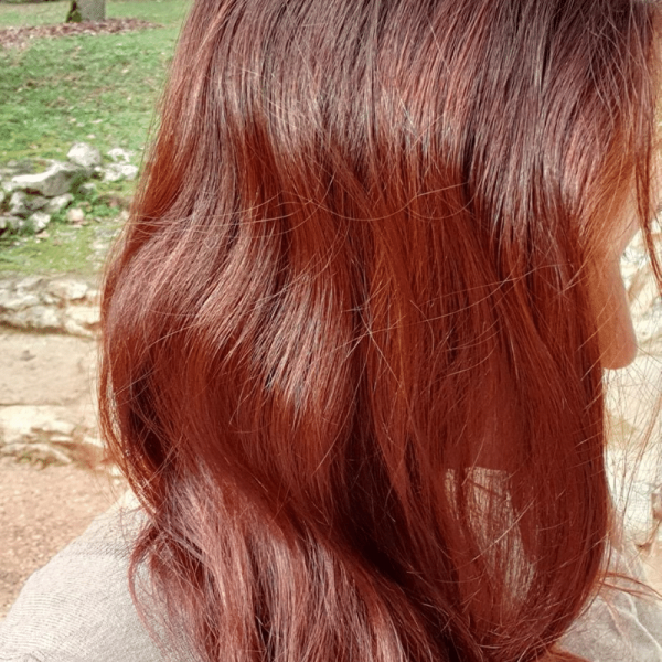 Mélange moitié Henné cuivré de Perse, et moitié Henné rouge froid Erbe di Jaans, avec un peu de baies de sureau & hibiscus en infusion.