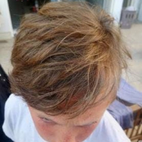 Henné blond + mélange éclaircissant + vit C 45 mn de pause sur mon fils cheveux lavés avec Urtekram camomille