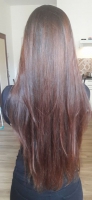 Moitié Khadi Rouge et moitié Khadi marron foncé , pose de 2h sur base châtain