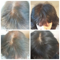 Après de multiples tentatives de différentes recettes, on est parvenues à trouver le bon mélange fait de katam, henné et poudres à tons bruns en application tous les 15 jours en un seul temps.