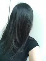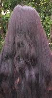 Mélange Indigo + Sidr + un peu de Henné Damask et infusion d'Hibiscus bien bien salée : une brillance de fou et des reflets violines / bleutés selon la lumière, avec même du bordeaux en plein soleil lié aux précédents hennés.