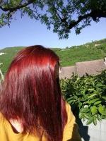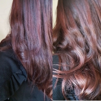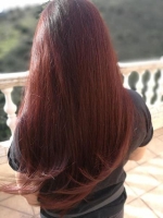 Le rouge cerise (rosso ciliega) de Phitofilos sur une base colorée au henné depuis plus de 3ans