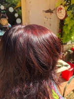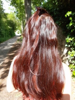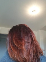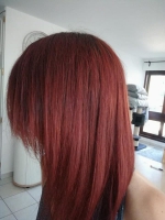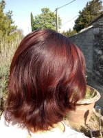 Couleurs différentes selon la luminosité ! Une chevelure habituée à des tambouilles régulières de bordeaux, red kamala, bois de campêche, hibiscus etc ....