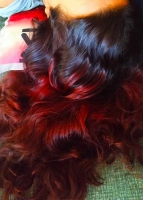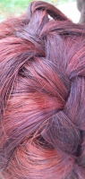 Plusieurs tambouilles sur une base châtain foncée qui ont donné de superbes reflets rouges à violine.