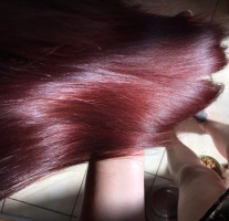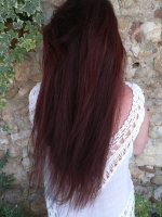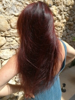 Henné Bordeaux et Ratanjot en pose ultra longue, tambouilles régulières toute les semaines voir 15jours car grande satisfaction de la couleur obtenue.