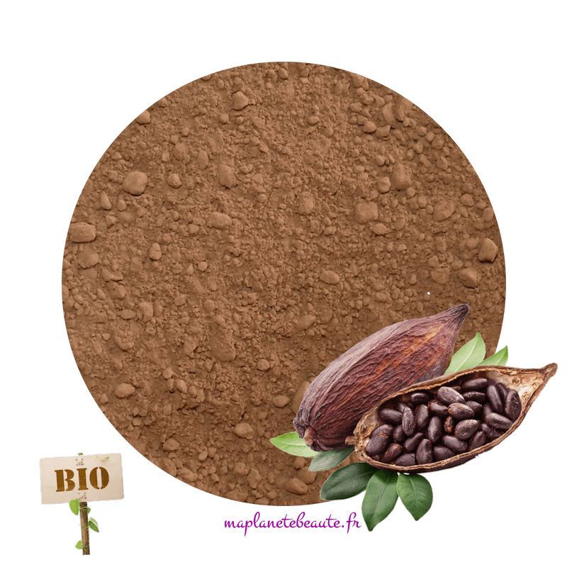 Petit arbre (5 à 6 m) originaire d’Amérique Centrale, aux rameaux duveteux et aux longues feuilles effilées. Les fruits typiques (cabosses) sont charnus. Chaque cabosse contient de 20 à 40 graines baignant dans une pulpe acide. Récoltés deux fois par an, on extrait des cabosses les graines et la pulpe qui donneront le cacao. Les fleurs du cacaoyer (petite taille) ont la particularité de prendre naissance directement sur le tronc et les branches. Le cacao est la poudre obtenue après torréfaction et broyage de l'amande des fèves de cacao fermentées.